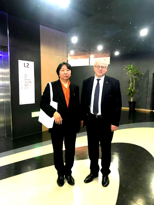 Sono state esposte alcune opere realizzate al Padiglione Italia dell’Expo di Astana (Kazakistan) 2017 e donate al WEM. Nella foto il maestro Izuru Mizutani (Giappone), collaboratore del Rivellino, con Romas Jankauskas, più volte Commissario del Padiglione della Lituania in varie Expo internazionali.