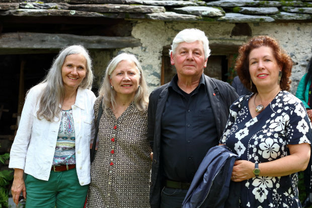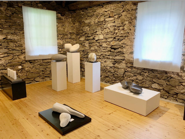 La festa di sabato si è tenuta dapprima al Museo di Vallemaggia Cevio, con i discorsi introduttivi (oltre al vicesindaco, la curatrice del Museo Alice Guglielmetti ed Almute Grossmann-Naef) e la presentazione della mostra d’arte ospitata nell’Infocentro, all’entrata del Museo. Riunisce opere in pietra di quattro artisti – Parami M. GertschVoellmy, Ingrid Städeli, ElkeWieland e Wolfgang Kessler – che hanno frequentato in passato la Scuola di Peccia, superato il corso di perfezionamento professionale e intensificato un lavoro d’arte concentrato in particolare sulla pietra. Anzi sulle pietre, come si può vedere nell’esposizione di Cevio, intitolata “La forma in divenire. Quattro punti di vista scultorei” ed aperta fino al prossimo 7 settembre. Dove la lavorazione della pietra affianca al raffinato versante artigianale un alto contenuto di tipo artistico, in particolare come “metafora della vita”, come ha detto in sede di presentazione Almute Grossmann-Naef.