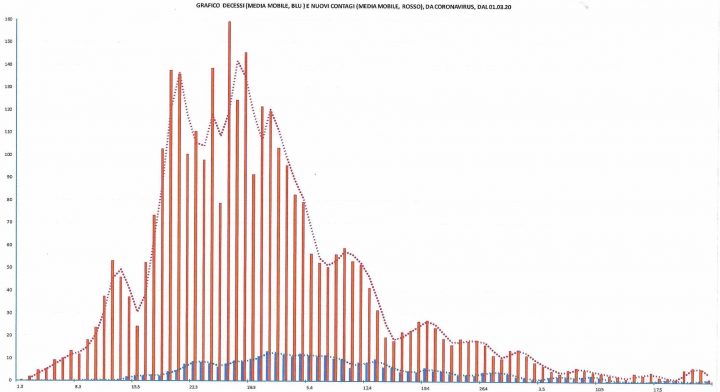 Riprendiamo un interessante post di Martino Rossi, accompagnato da un grafico (media mobile su 3 giorni).