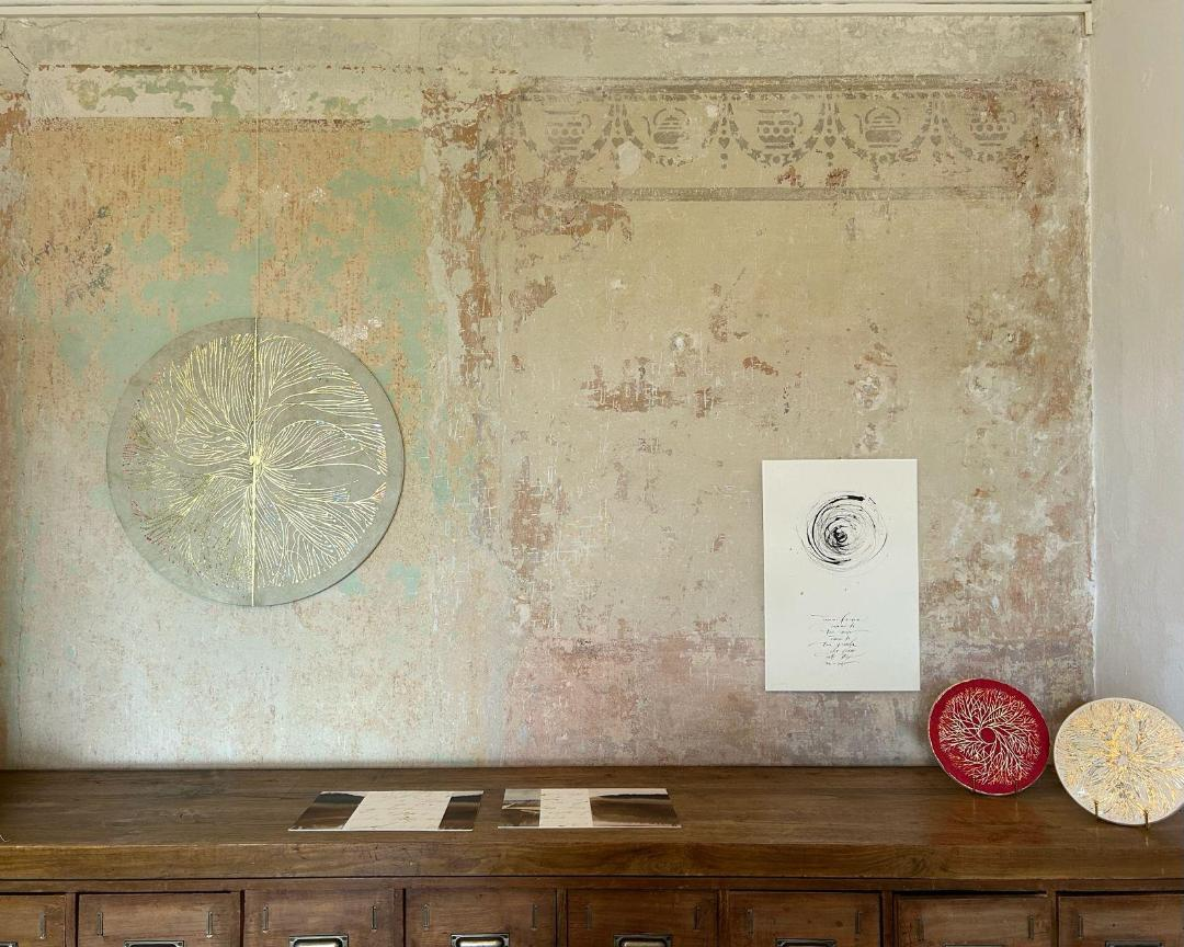 Particolarmente toccante è stato l’incontro con Gabriela Hess, artista sensibile e dinamica, che ha illustrato al Presidente Colucci la genesi della sua raffinata ricerca calligrafica. Attraverso fogli pregiati e pigmenti scelti con cura, Hess ha mostrato l’elaborazione della scrittura arcaica come gesto meditativo e narrativo, attirando l’attenzione sul legame profondo tra la forma grafica e il pensiero, in continuità ideale con la calligrafia di Leonardo da Vinci. Una testimonianza viva di come l’arte possa farsi memoria, ritmo e rivelazione.