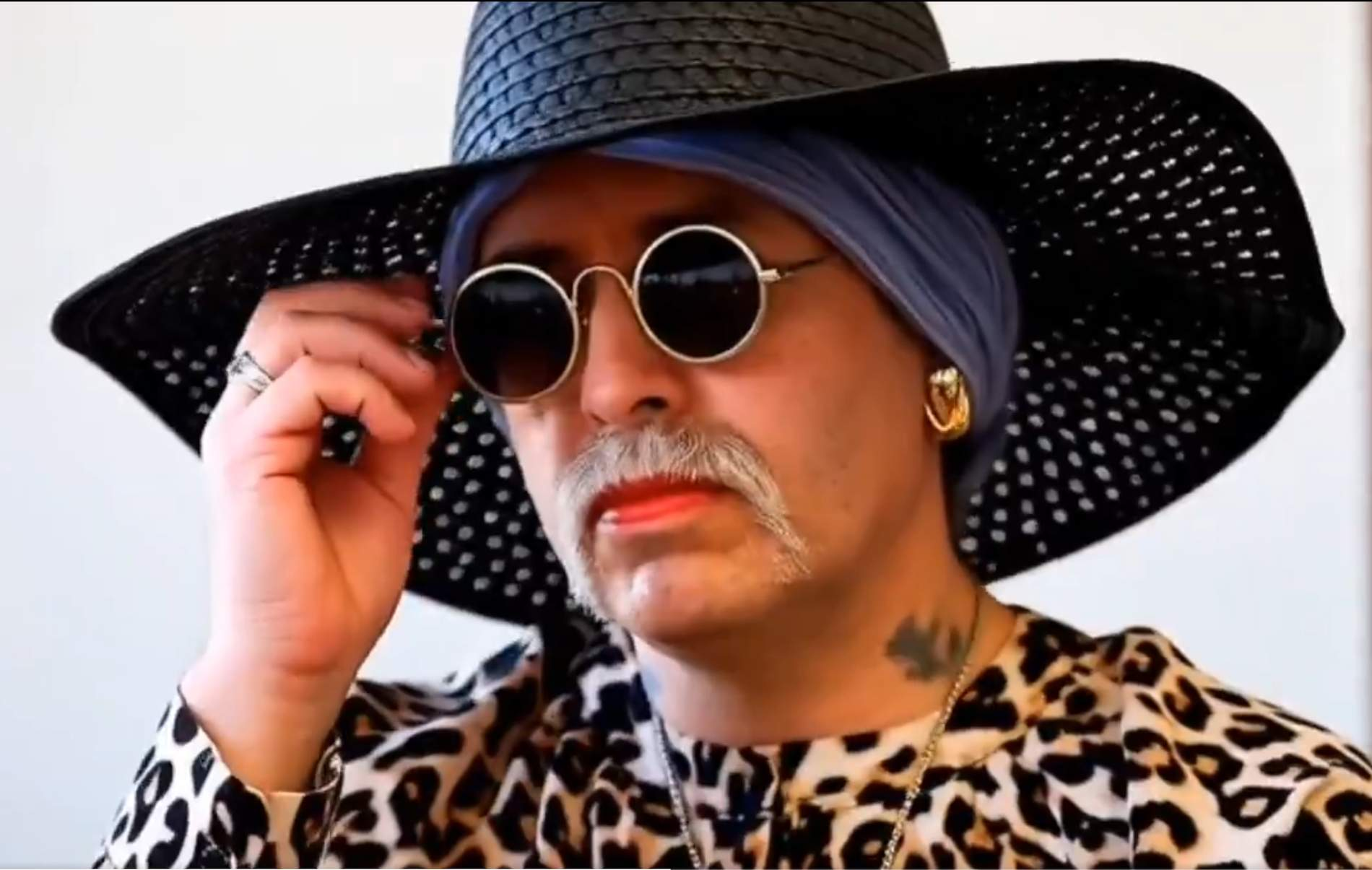 Le foto che circolano online parlano da sole: cappello di paglia a tese larghe, occhialini tondi alla John Lennon, rossetto acceso, orecchini dorati… e baffi da ufficiale prussiano. Più che una transizione, sembra l’ennesima performance teatrale di un personaggio che ha fatto dell’ambiguità la sua arma mediatica.