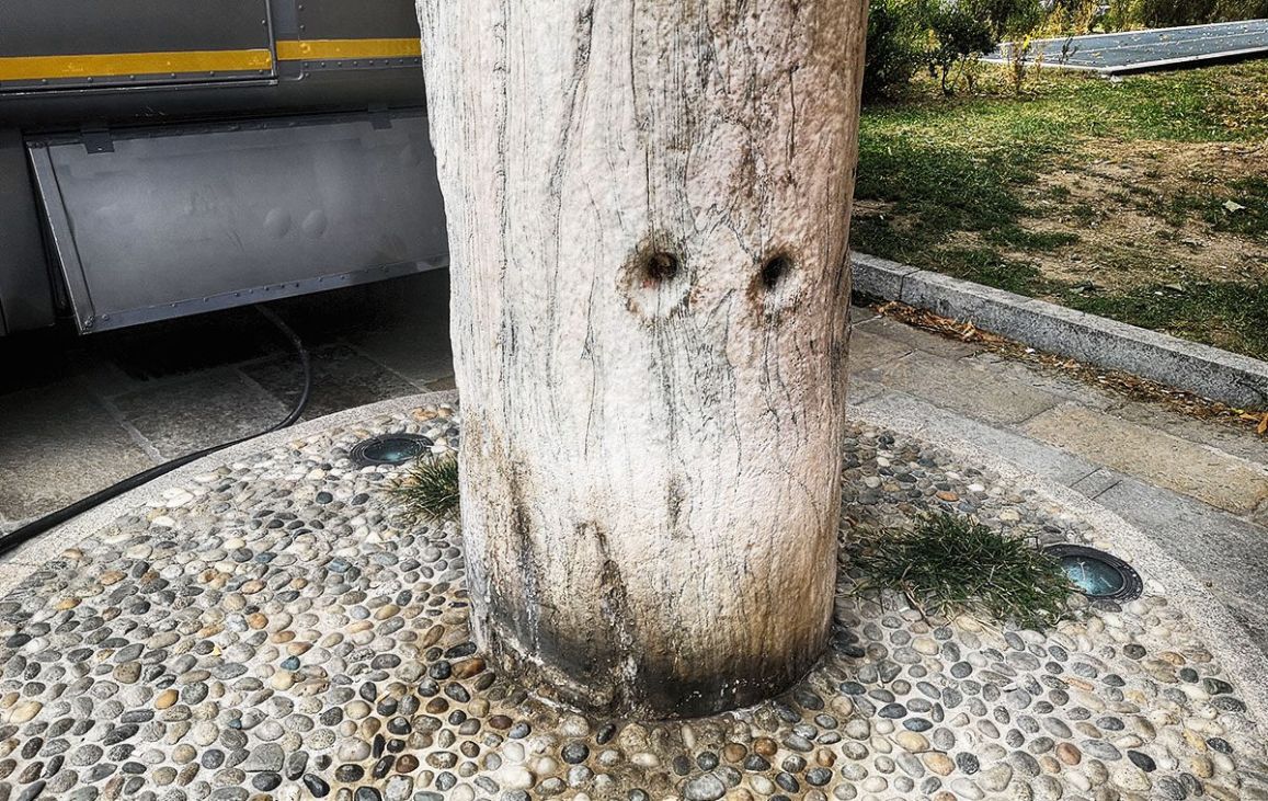una colonna in pietra mozzata ha due fori ben visibili: secondo la