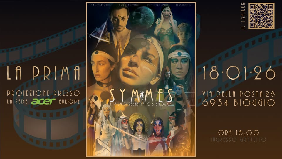 Siamo lieti di annunciare la Prima ufficiale del film SYMMES, l’atteso esordio alla regia di Sebastiano B. Brocchi, artista, scrittore e ricercatore ticinese dalla straordinaria versatilità creativa. L’evento si terrà il 18 gennaio 2026, alle ore 16:00, presso la sede ACER Europe, in via della Posta 28, Bioggio.